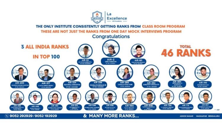 Hyderabad (Telangana) [India], May 27: La Excellence IAS Academy, a renowned and trusted institute for Civil Services Examination preparation, has once again demonstrated its commitment to excellence with exceptional results in the recently announced UPSC Civil Services Exam 2022. Over 45+ students from La Excellence IAS Academy have achieved remarkable ranks, further solidifying its position as one of the leading IAS coaching institutes in India.