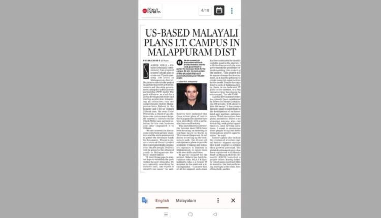 US-based Entrepreneur Sabeer Nelli Proposes a 100-Acre IT Park in Malappuram District